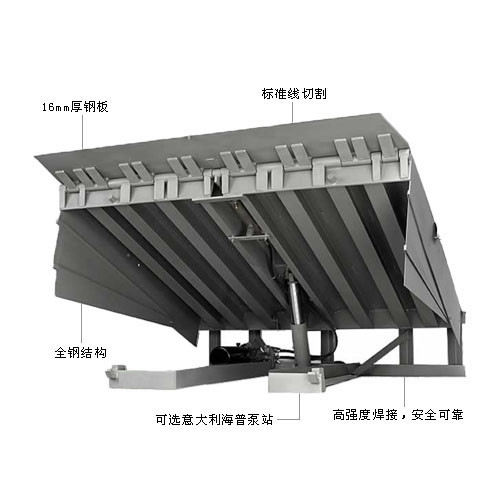 固定式登車橋是針對及克服上述情況而設計制造的,可靈活地將貨臺與貨車搭連在一起,使裝卸搬運車輛能暢通無阻地進出貨車裝卸貨物,大大提高裝卸貨效率及加強了作業人員和貨物的安全,是現代化物流倉庫及工廠必備的裝卸設備。