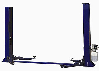 雙柱式舉升機屬于一種特殊液壓升降機,有對稱式和非對稱式兩種。對稱式舉升機四根臂的臂長大致相等,這樣使得汽車中心(或質心)處于立柱的中間位置,對于皮卡和箱式貨車等類型的汽車的日常維修來說這種對稱式舉升機可能是很好的選擇。但是對于一些柱間寬度不夠大的對稱式雙柱式舉升機來說,汽車舉升后不能打開車門是一個很大的缺點。非對稱式舉升機的立柱向后旋轉了一個角度(大約30°),并且前臂比后臂稍微短一些。當把汽車停放到這種非對稱式的舉升機適當位置時,車的位置就向后移動了一些,因此,我們就很容易地從車門進出。而且,這種非對稱式舉升機轉動的立柱,可以確保車輛的重心安全地定位在立柱之間。
